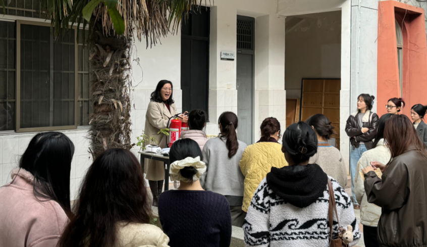 最后的实战演练环节将活动推向了高潮。在室外安全区域,张江莉老师现场展示了灭火器、灭火毯以及消防栓的正确使用方式,让同学们切实掌握了灭火原理和灭火技巧。