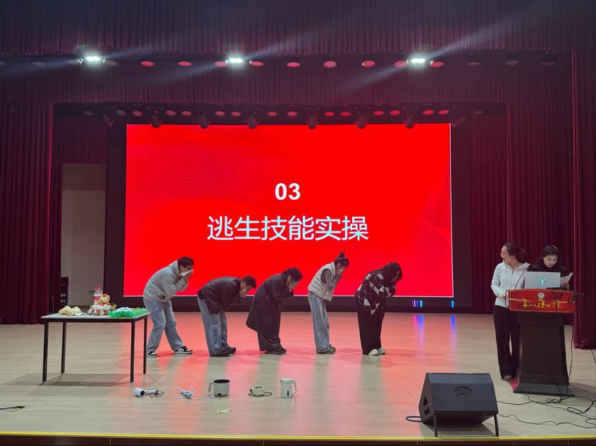 活动伊始,一场消防知识专题讲座于艺术学学院小剧场盛大开启。此次讲座内容丰富详实,主要围绕“火灾案例警示”“基础消防知识”以及“逃生技能实操”这三大核心模块有序展开。在讲座过程中,通过深入剖析校园与社区的真实火灾案例,同学们得以深刻认识到火灾所带来的严重危害。同时,系统讲解电器的正确使用规范、现场逃生的实用技巧以及灭火器的操作要领,进一步夯实了大家的防火理论基础。此外,现场还特别设置了急救模拟环节。医疗组为同学们演示了止血、包扎等简易急救方法,并邀请同学上台进行实际操作,切实强化了大家的应急处置能力。