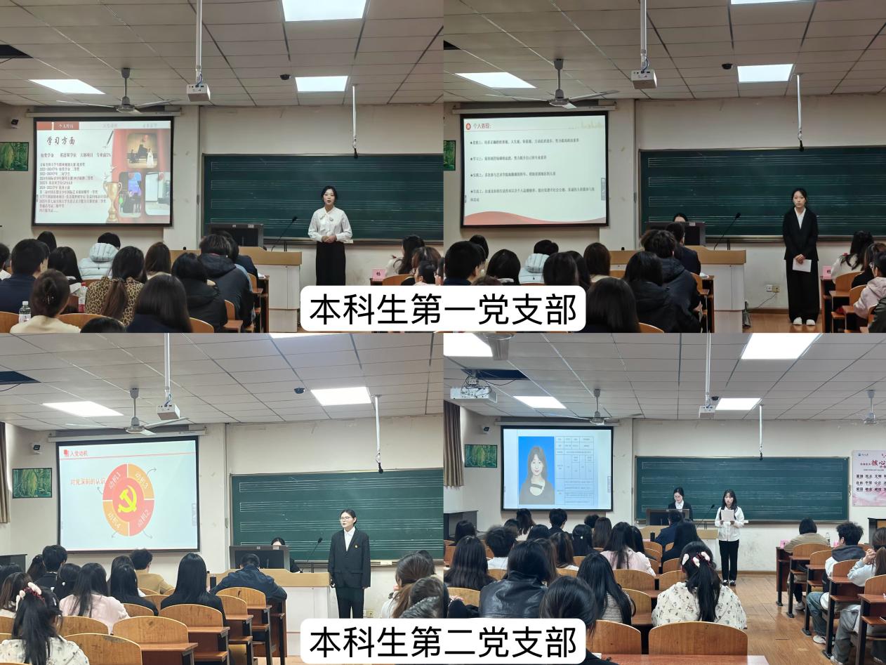本次答辩以支部为单位,分为上、下两场。本科生第一党支部、第二党支部的拟发展对象围绕自我介绍、入党动机、组织培养、理论学习、现实表现、自身不足及改进规划等方面,进行了全面汇报。他们的讲述中,既有对信仰的炽热向往,也彰显出以青春之我投身党的事业的坚定决心。