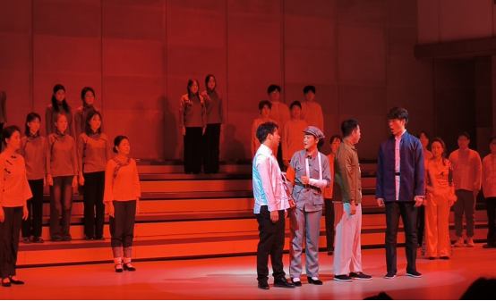 歌剧《运河谣》开场曲《我们是运河的流水》拉开帷幕,QZ231 组合的精彩演唱瞬间点燃现场氛围。随后,《灿若星辰的目光》《一个在烂泥,一个在天边》等二重唱,以及《大豆白米花生》合唱依次上演,不同演唱形式展现出歌剧《运河谣》的丰富情感层次 。孙立老师提出“歌剧中合唱的层次以及对歌剧氛围的营造与渲染”。