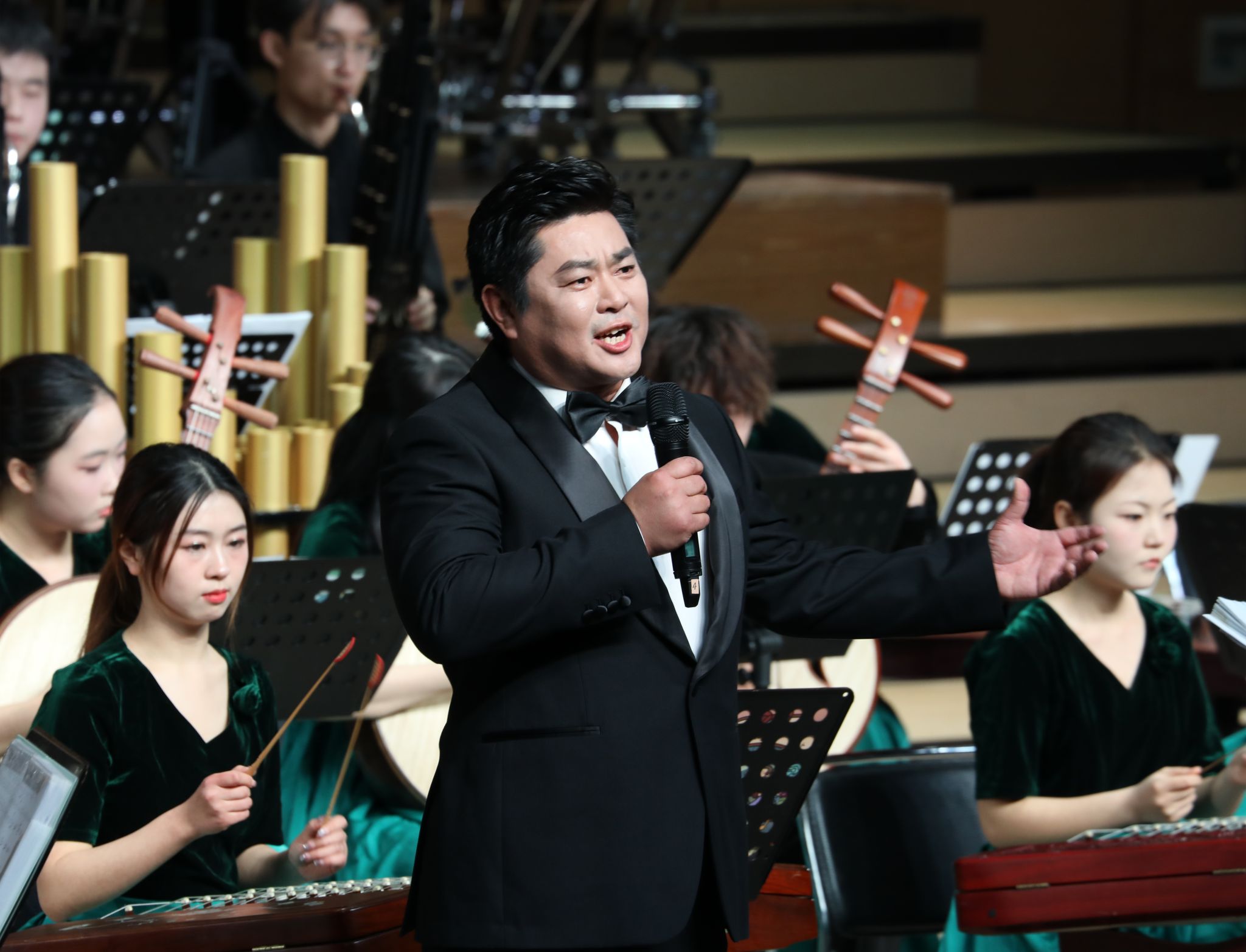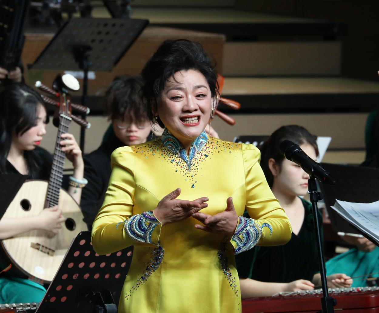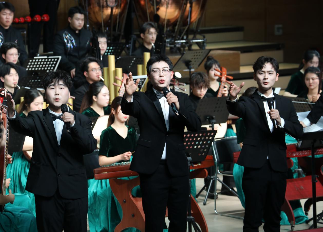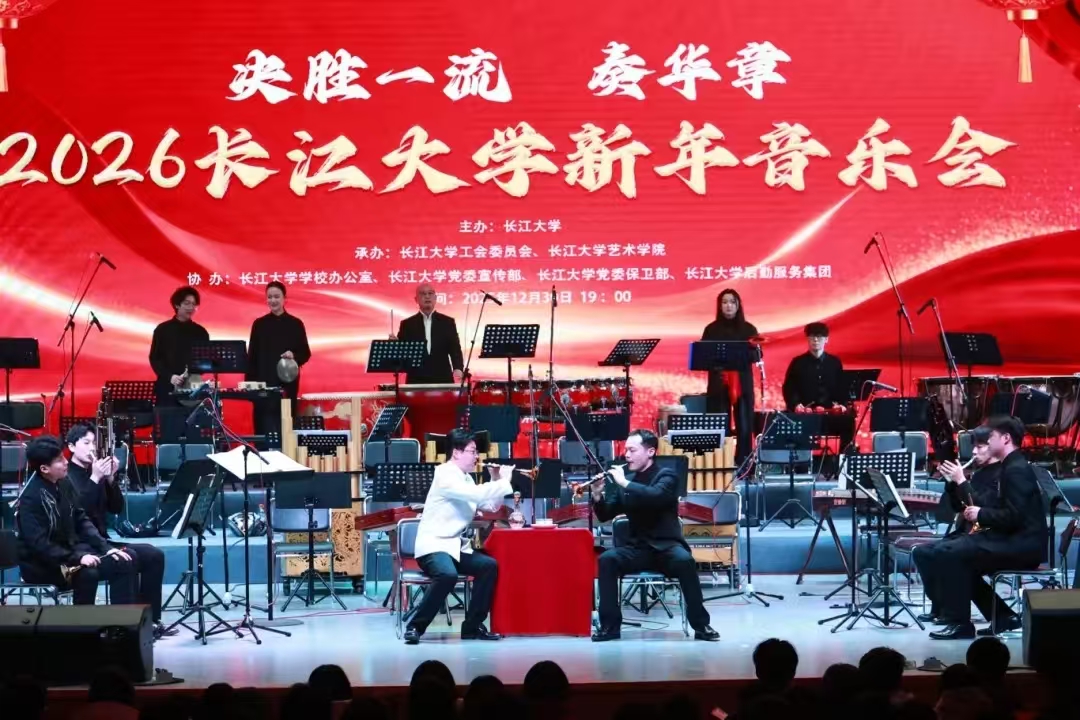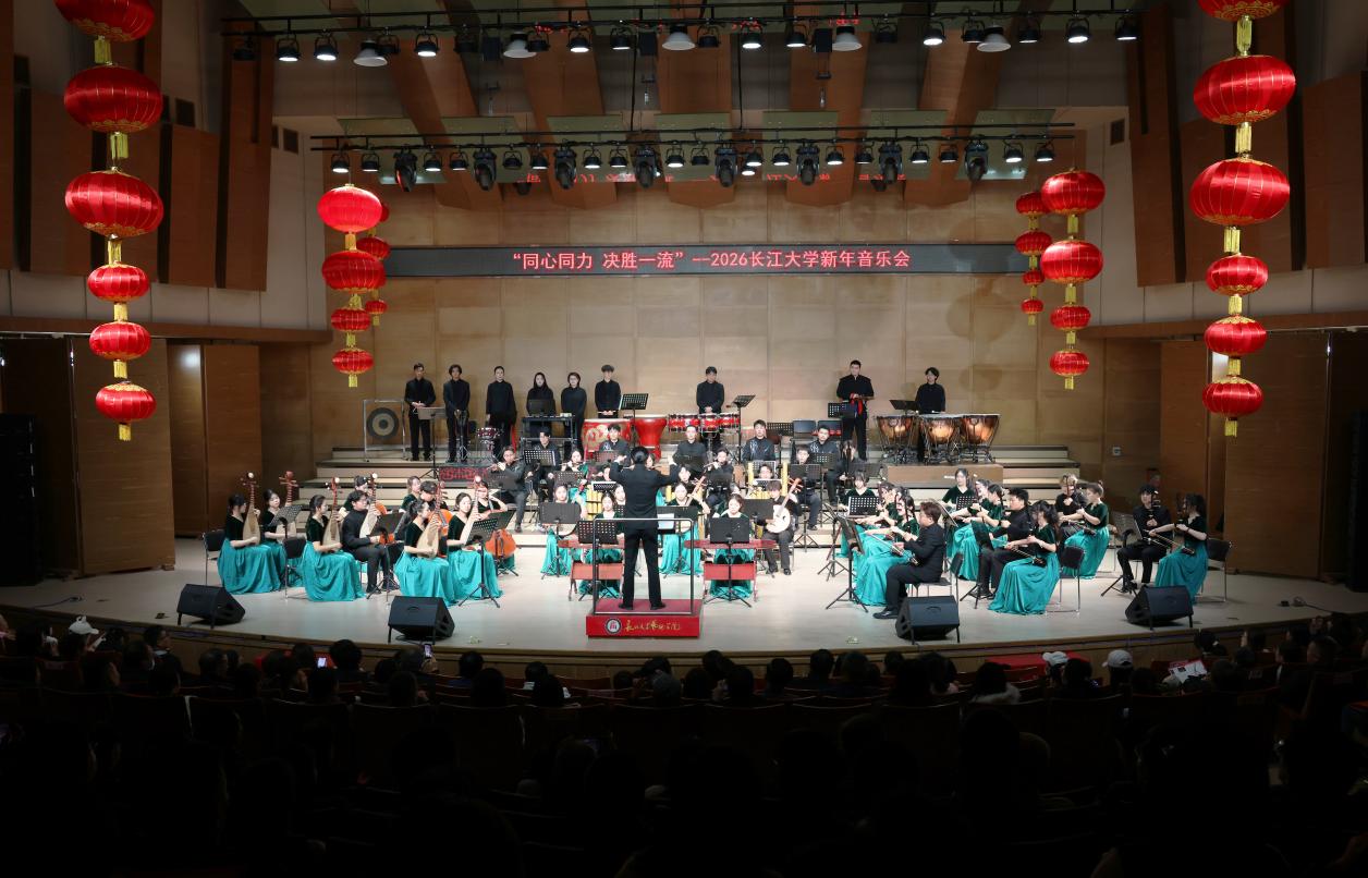 演出中,“长江之声” 民族管弦乐团奏响《春节序曲》等传统民族管弦乐作品,明快激昂的旋律瞬间烘托出热烈的新年氛围;唢呐与乐队演绎的《江汉潮声・沃土》,融入浓郁荆楚风土人情,彰显艺术教学扎根地方的鲜明特色。女声三重唱、男声表演唱、合唱及民族乐剧等节目轮番登场,或传递赤诚的红色情怀,或展现厚重的文化底蕴,兼具思想性与艺术感染力。整场演出以扎实的艺术功底印证了学校艺术教育的丰硕成果,不仅为校地、校企、校友间搭建了情感联结与合作交流的平台,更以文化为纽带凝聚起各界支持学校发展的强大力量,生动诠释了高校社会服务职能与助力地方经济文化发展的责任担当。