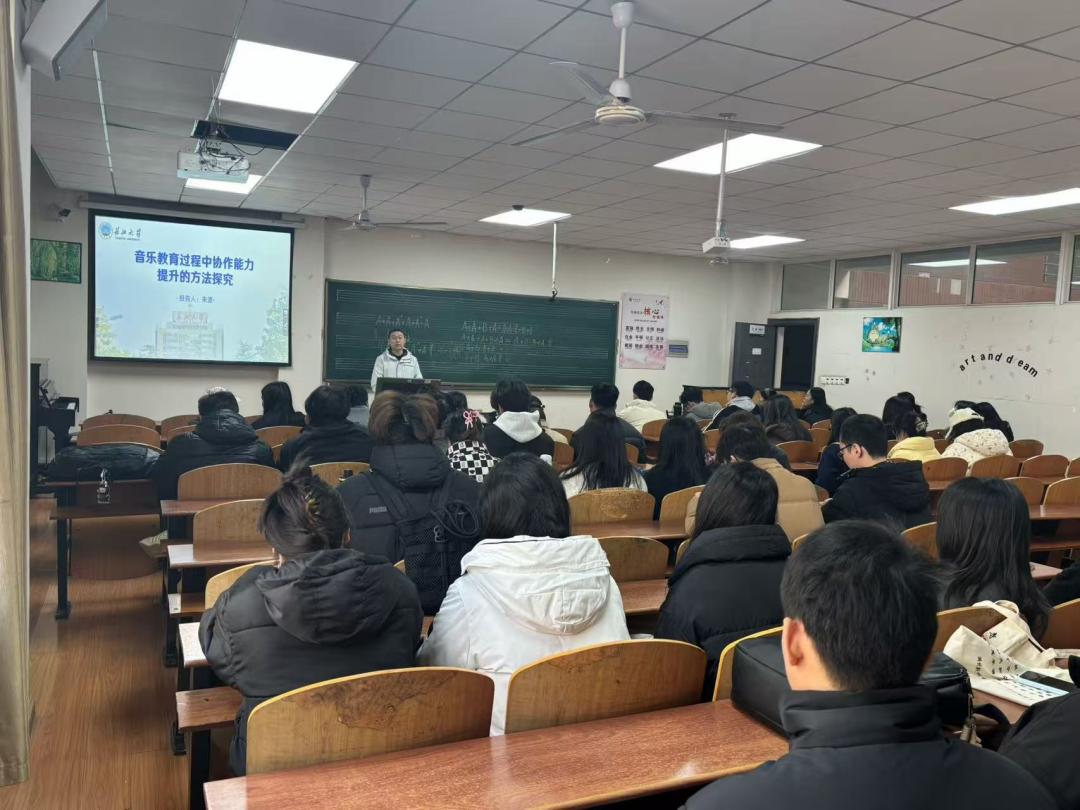 (通讯员谭皓月)2025年12月3日,太阳集团2007网站,太阳集团网址2007登录Y210教室举办以《音乐教育过程中协作能力提升的方法探究》为主题的学术沙龙。本次活动由太阳集团2007网站音乐系朱波副教授主讲,深入探讨音乐教育中协作能力的培养路径与创新方法,挖掘集体音乐活动在育人过程中的多元价值。