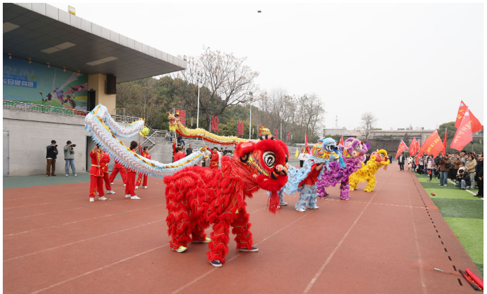 健康跑活动在热闹的“龙腾舞狮迎新年”表演中拉开序幕。伴随着铿锵的锣鼓声,彩狮欢腾跳跃,飞龙穿梭腾挪,师生挥舞国旗共同欢呼,现场气氛热烈,活力四射。师生齐唱校歌,表达了对学校的美好祝愿。